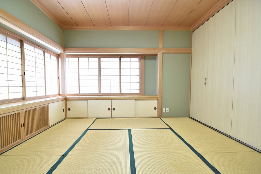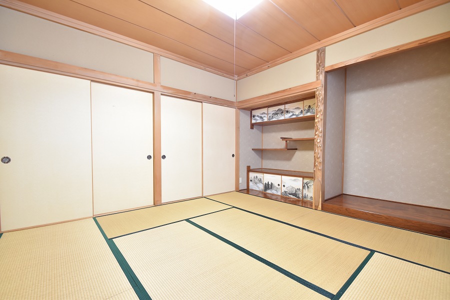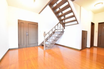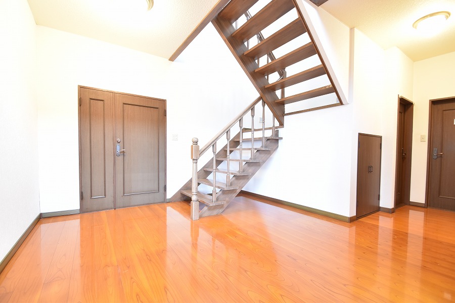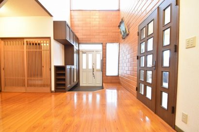 玄関を開けた瞬間、まず目に飛び込むのは大きな吹き抜け。天井の高さが気持ちよく、広々としたホールは開放感たっぷり。リビングは陽当たり良好で、窓から差し込む光がとても心地よい空間をつくっています。さらに1階の和室を見てくださいよ……「すっ、すごい!」と思わず声が出るはず。上質な設えで、お客様を迎えるにも最適です。
